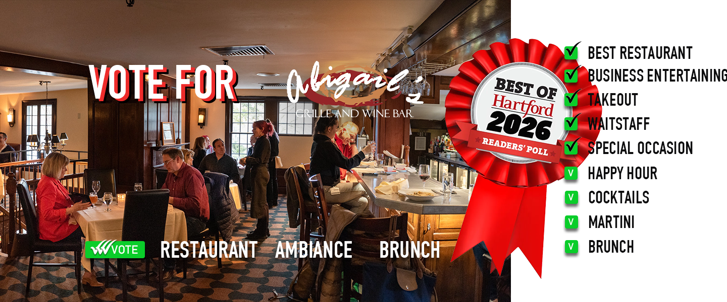 From birthdays, anniversaries, and other special events in our dining room to a casual evening out at the bar, Abigail’s is happy to entertain your visit.